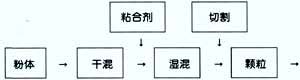 粉體物料與結合劑在圓筒形容器中由冶金部混合槳充分混合成濕潤軟材,然后由側置的高速粉碎槳切割成均勻的濕顆粒。